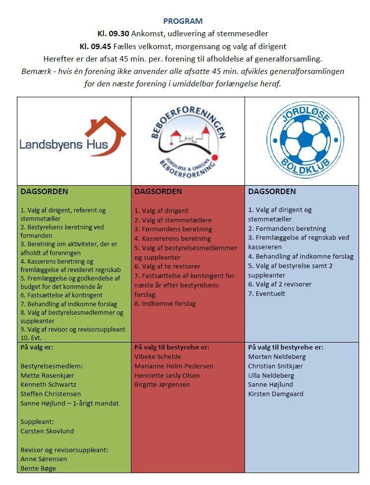 Jordløse Boldklub, Landsbyens Hus og Beboerforeningen holder igen iår fælles generalforsamling. Vi glæder os til at se jer.